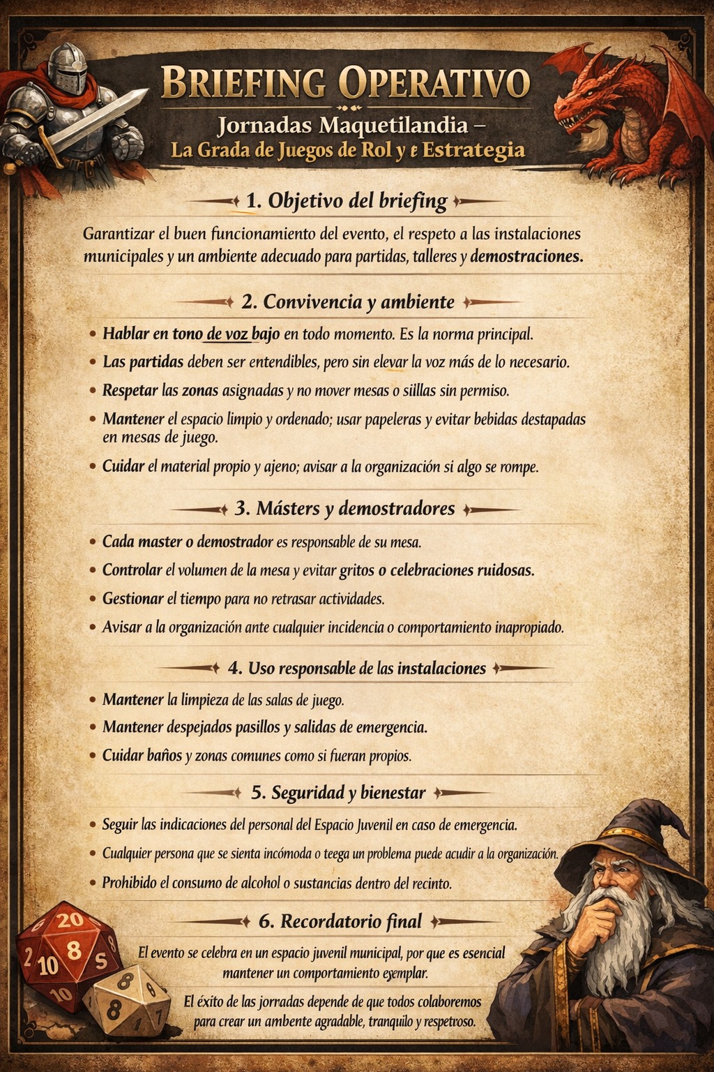 Durante el evento podrás sentarte a una mesa y convertirte en otra persona por unas horas, explorar mundos nuevos, tomar decisiones imposibles o simplemente dejarte llevar por la historia. Podrás enfrentarte a peligros, resolver misterios, conquistar territorios… o acabar creando una pequeña familia elegida entre risas y tiradas de dados.